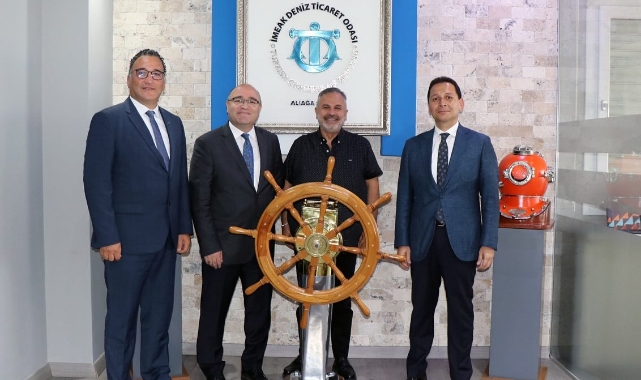 Tersaneler ve Kıyı Yapıları Genel Müdürü Salih Tan ile Kıyı Emniyeti Genel Müdürü Mustafa Bankaoğlu, İMEAK Deniz Ticaret Odası (DTO) Aliağa Şubesi Yönetim Kurulu Başkanı Adem Şimşek’i ziyaret etti. Ziyarette, İMEAK DTO Yönetim Kurulu ve Meclis Üyeleri de hazır bulundu. Ayrıca Aliağa Bölge Liman Başkan Yardımcısı Günhur Şanlı ile bölgedeki liman temsilcileri de toplantıya katılım sağladı.Ziyaret sırasında bölgenin talepleri ve önerileri dile getirilirken, karşılıklı görüş alışverişinde bulunuldu. Toplantının ardından İMEAK DTO Aliağa Şubesi Yönetim Kurulu Başkanı Adem Şimşek, Salih Tan ve Mustafa Bankaoğlu’na ziyaretlerinin anısına hediye takdim etti.